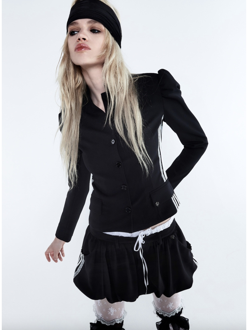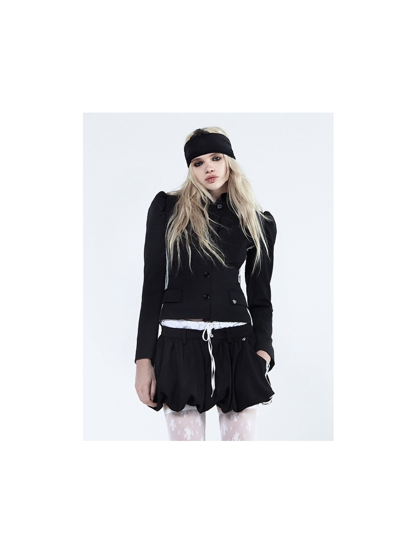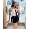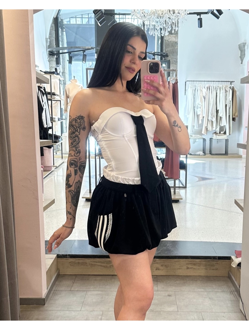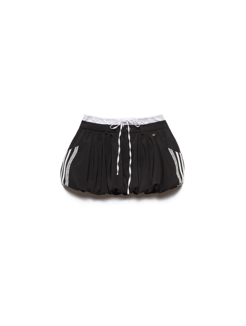 Mini gonna a palloncino con coulisse e doppia vita a contrasto.