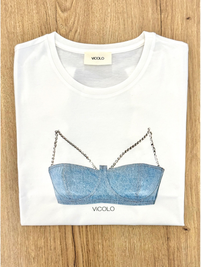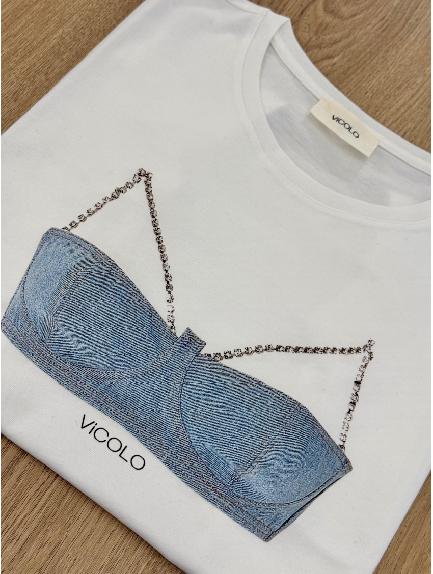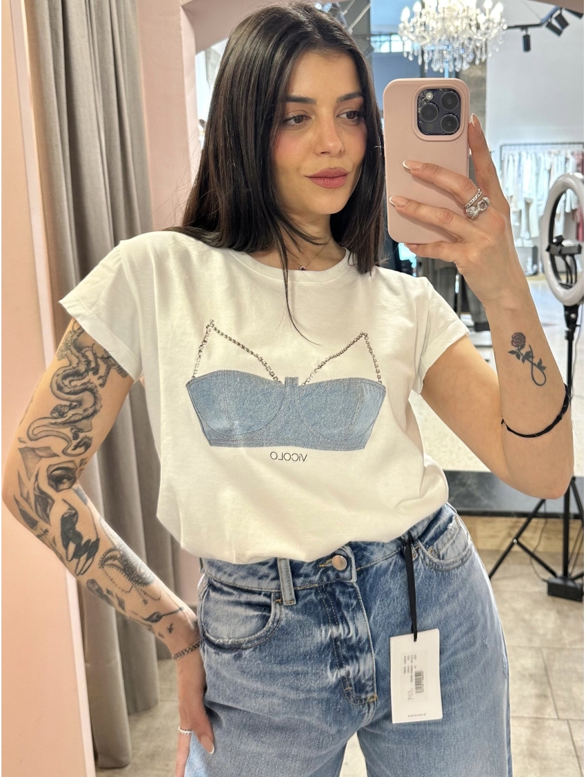 Vicolo - T Shirt bianca con Bralette