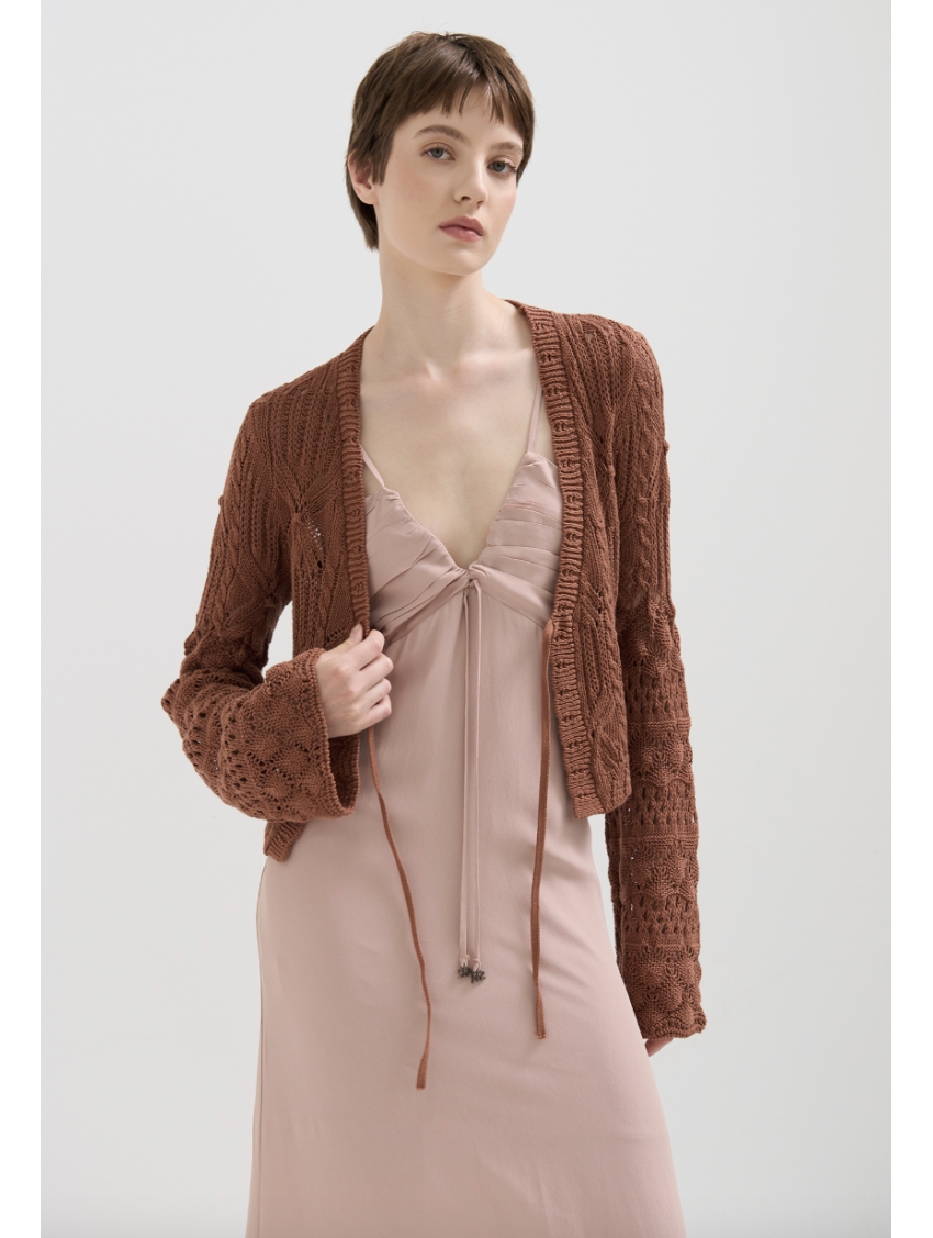 PRESENTA SPALLINE SOTTILI, UNO SCOLLO A V E UN DRAPPEGGIO SUL SENO.