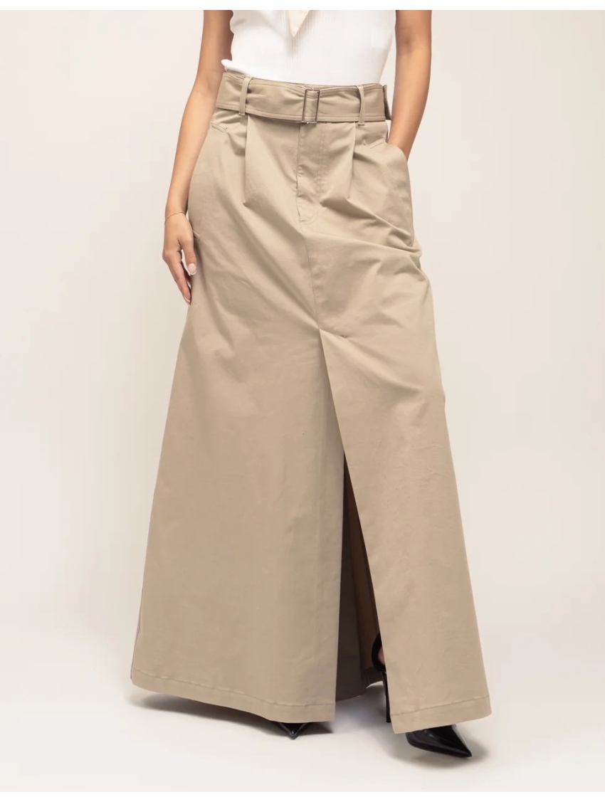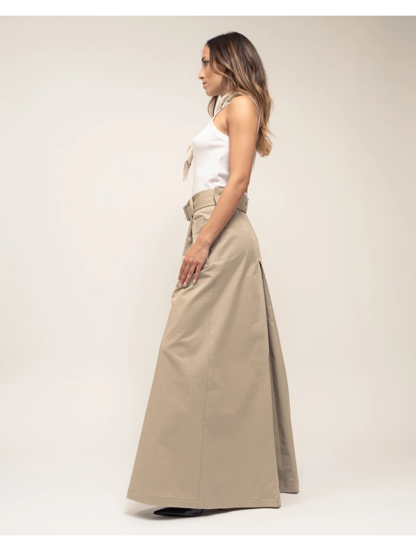 Gonna lunga in gabardina stretch colore beige