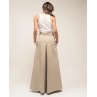 Vita alta, chiusura frontale bottone e zip YKK®, passanti, cinta regolabile, pieghe sul davanti, tasche laterali, spacco frontale, linea savassata, spacco posteriore con bottoni, fondo dritto