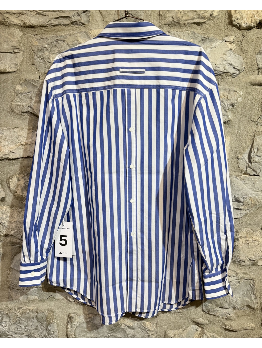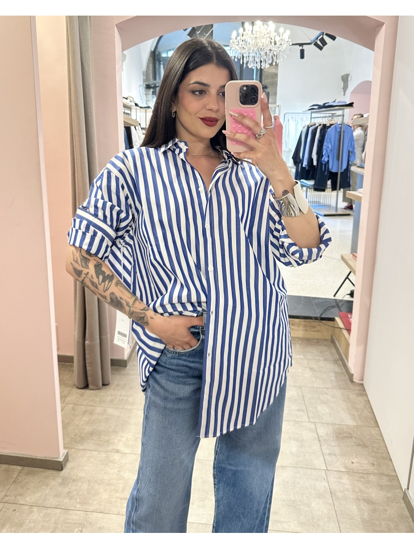 Modello over a righe bianche e azzurre in cotone