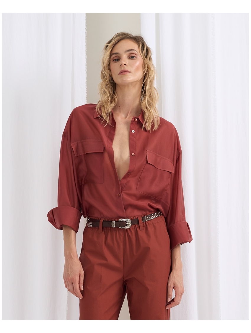 Camicia fluida in tessuto semitrasparente in misto lyocell.