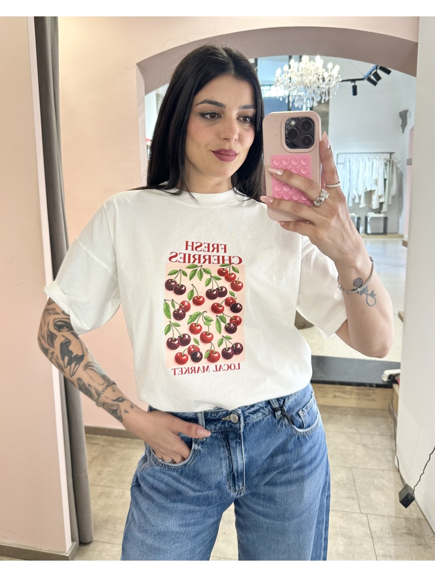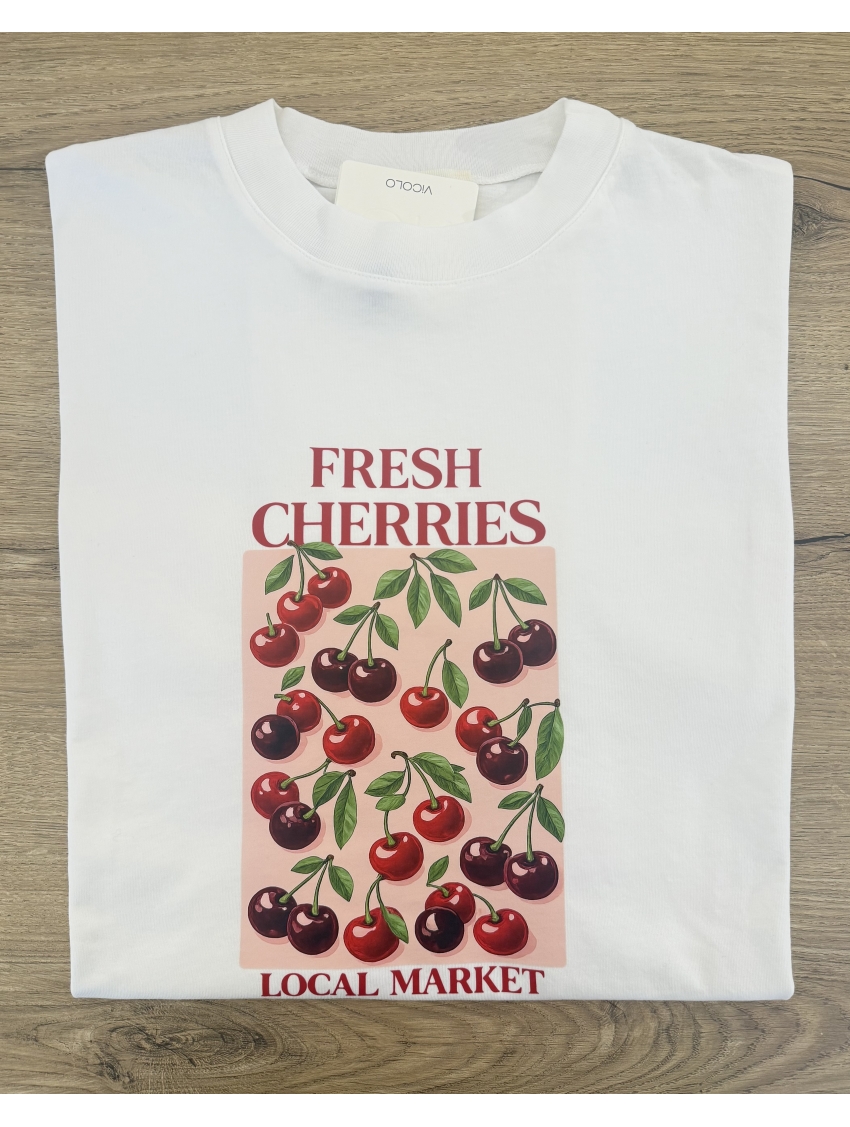 Vicolo - T Shirt Bianca "FRESH CHERRIES"