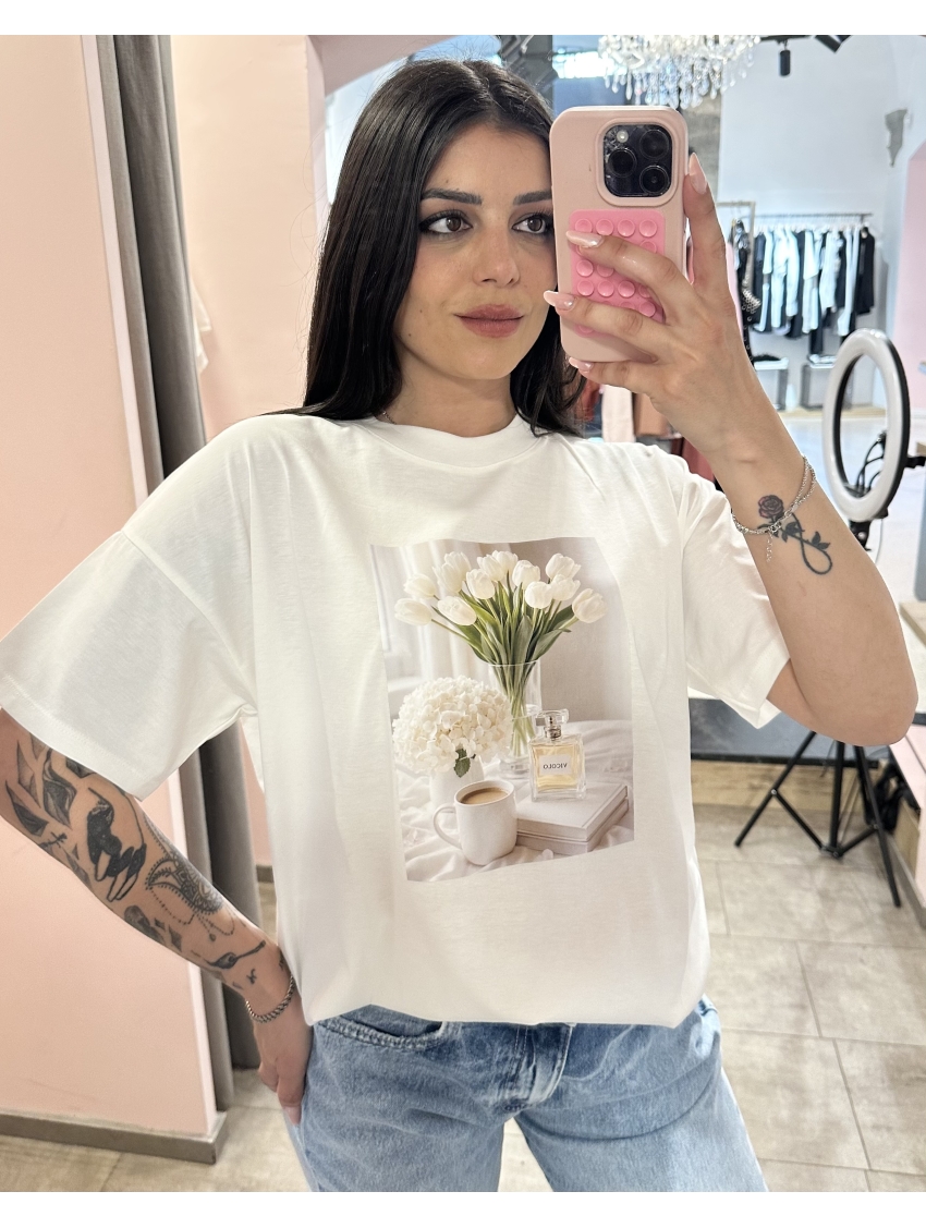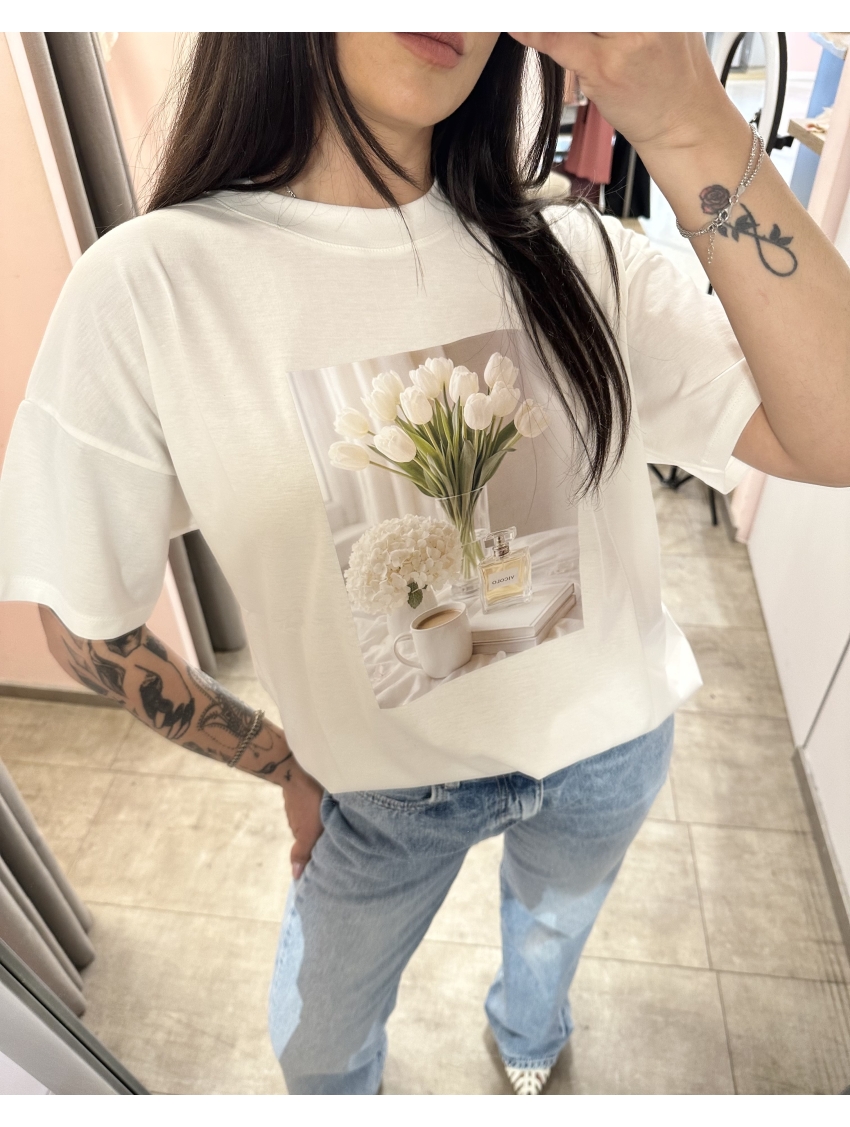 Vicolo - T Shirt Bianca "Tulipani"